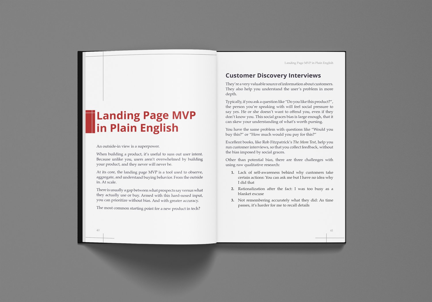 Check out the definitive guide to landing pages as MVPs. The #1 bestselling guide to testing out your ideas or products, by collaborating wiith the market. It’s a different mindset: not conversion rate optimization, it’s not design and not UX: